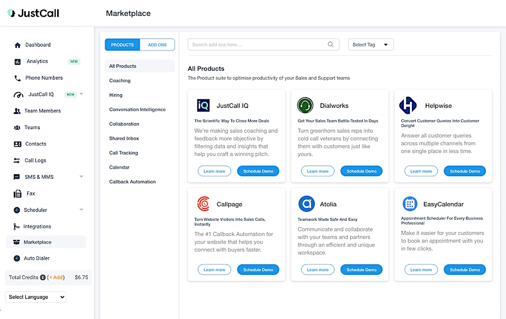 Dashboard of JustCall, a SaaS Labs offering that allows SMBs to set up a cloud-based contact center for sales or support teams within minutes. (Image credits: SaaS Labs)