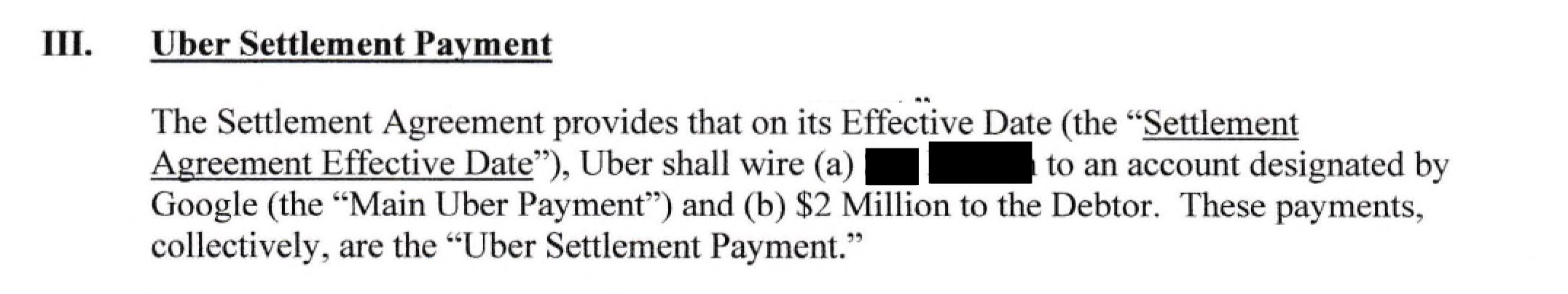 Uber is not paying Google the full $179 million amount of the award; the exact figure was redacted in filings and is protected by a confidentiality clause.