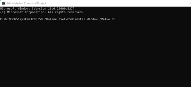 “DISM /Online /Set-OSUninstallWindow /Value:60”