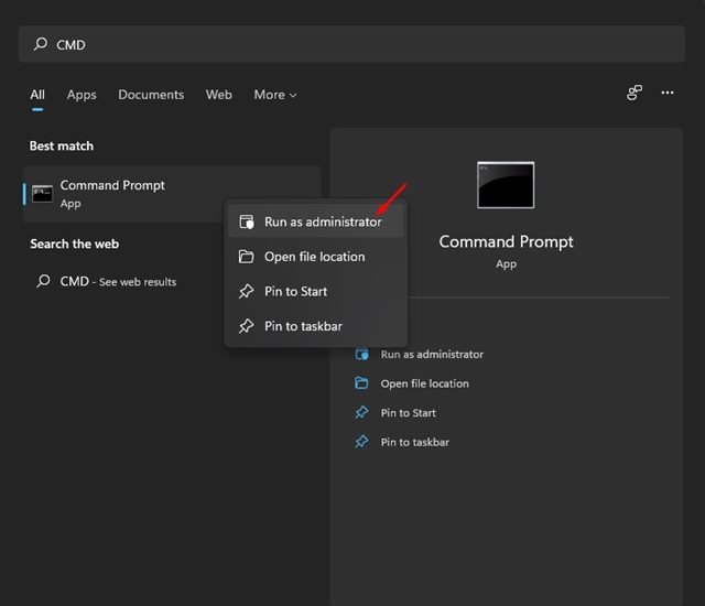 2. Right-click on the Command Prompt and select Run as administrator.