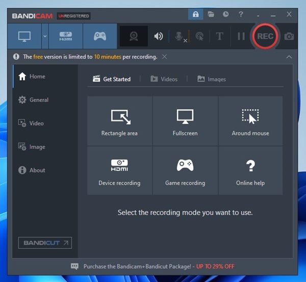 1. First of all, download & install the Bandicam screen recorder on your Windows 11 computer.