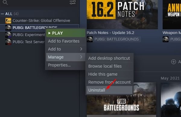That’s it! You are done. Now you just need to follow the on-screen instruction to uninstall the Steam game.