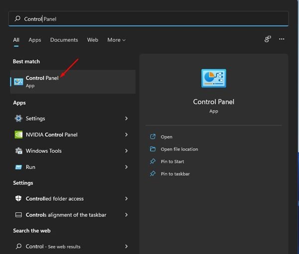 1. First of all, click on the Windows 11 search and type in Control Panel. Next, click on the Control Panel from the list.