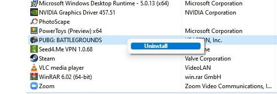 3. Now, find the Steam game which you want to uninstall. Right-click on it and select the Uninstall option.