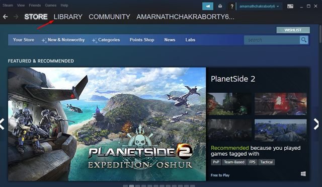 2. Next, click on the Library tab in the top-left corner of the Steam client.