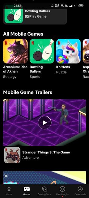 3. This will open the Netflix Games screen. Here you will find every game that was available for free. You can even watch the trailers of the games.