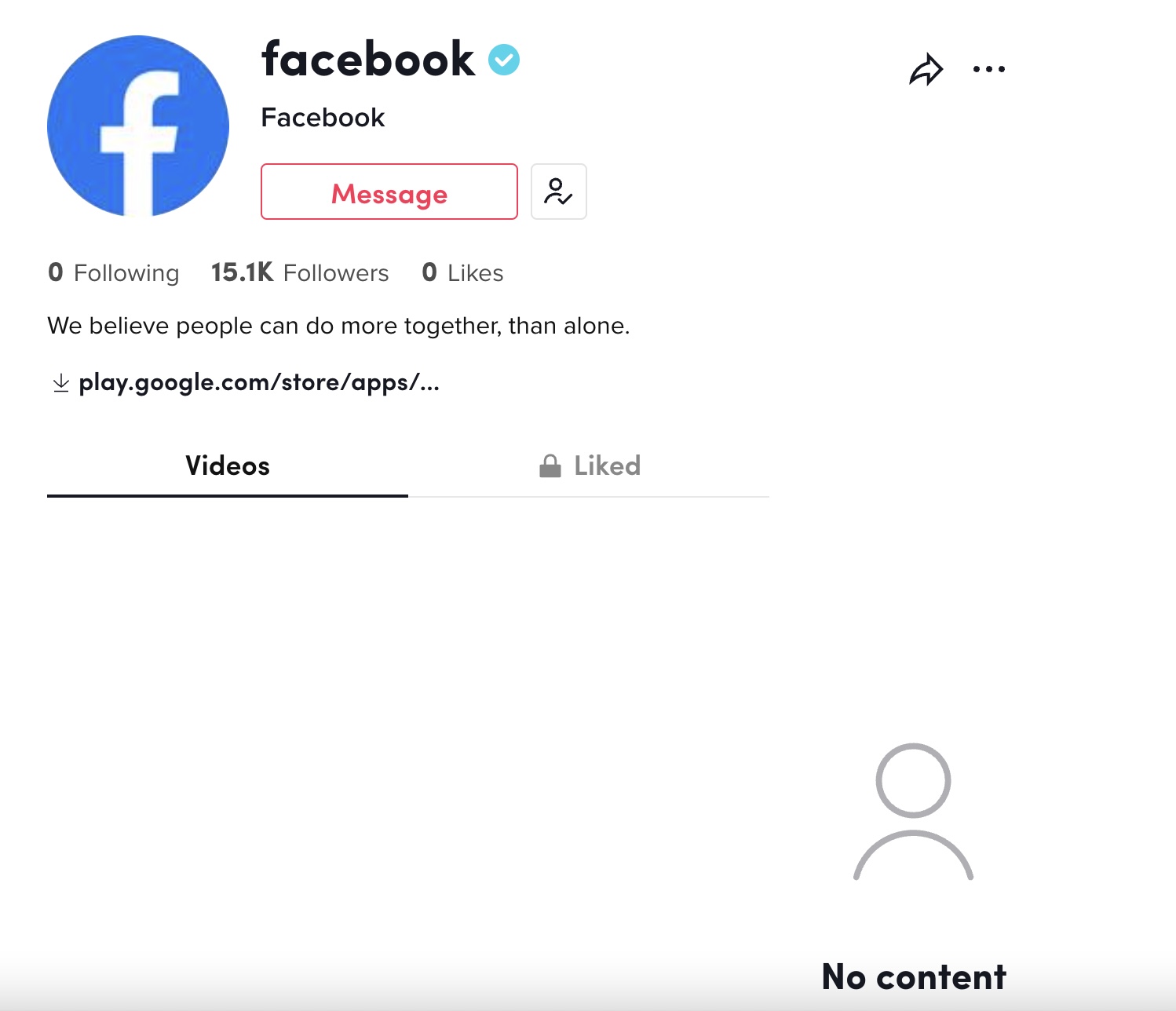 What’s Facebook doing on TikTok? Scoping out the competition? DM’ing Charli? Recruiting beta testers? Buying ads? We’ll know soon enough because the social networking company has set up its own TikTok account, where it’s already amassed some 15.1K followers, as of the time of writing, despite not having posted any public videos. The account is verified by TikTok and Facebook also confirmed it’s legit.