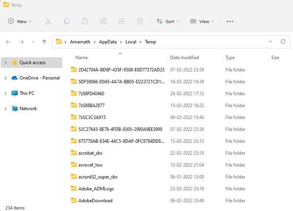 3. This will open the Temp folder on your system. Here you need to delete everything.