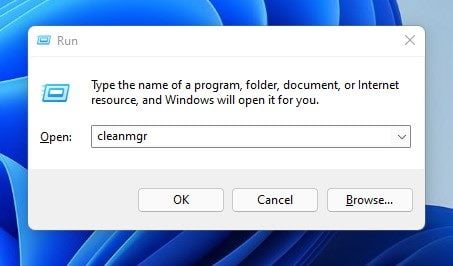 2. On the RUN dialog box, enter cleanmgr and click on the Ok button.