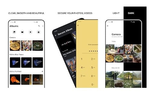 Apart from regular photo management, 1Gallery offers you an option to store your private photos on vault; you can protect the vault with a Password, PIN, Pattern, and Fingerprint.