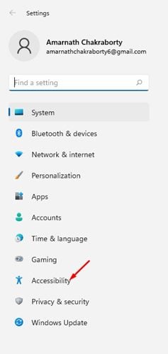 2. On the Settings app, click on the Accessibility option, as shown in the screenshot below.