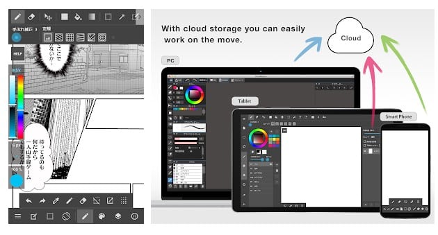 The app offers different creative tools for illustrators and comic book artists. MediBang Paint comes loaded with many brushes, fonts, and pre-made backgrounds.