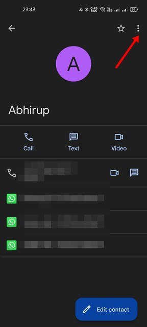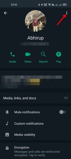 4. Next, tap on the three dots on the contact’s profile page.