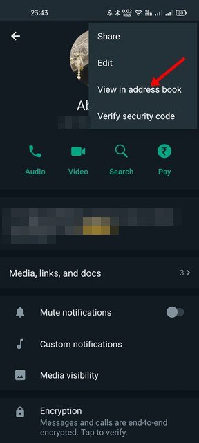 5. From the list of options, tap on the View in the address book.