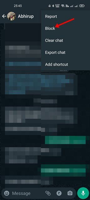 3. From the list of options, tap on the Block.