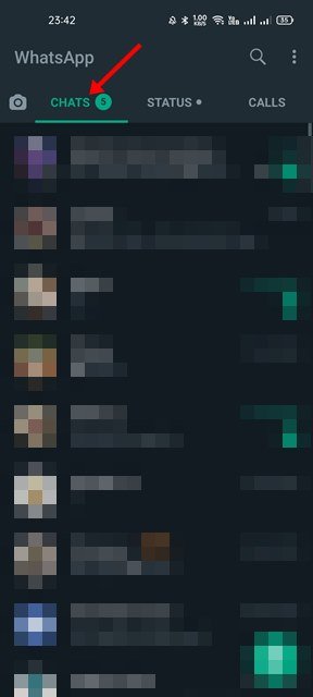 1. First of all, open the WhatsApp app on your Android/iOS device. Next, switch to the Chats tab, as shown below.