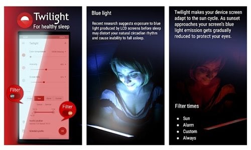 Twilight is not exactly a screen dimmer app, but it somehow reduces the brightness intensity of your screen. The app makes your device screen adapt to the time of the day.