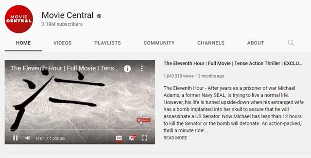 The description of Movie Central says that all of the contents published on the channel are under legal license from various copyright holders and distributors. This means you can watch movies online on this channel without worrying about breaking any law.