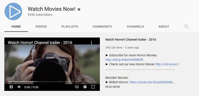 This is another best YouTube channel for horror movie fans. You will find various horror movies on Watch Movies Now! All of the movies are legally licensed.