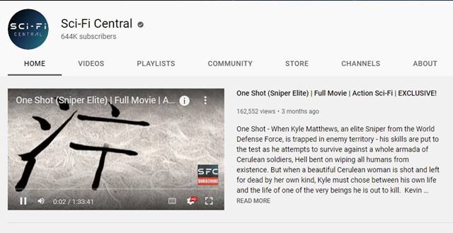 Both Sci-Fi Central and Movie Central is owned and operated by the same VA Media Ltd. Sci-Fi Central is a YouTube channel created for Science Fiction lovers. The YouTube channel has Sci-Fi movies and TV Shows that you can watch for free.