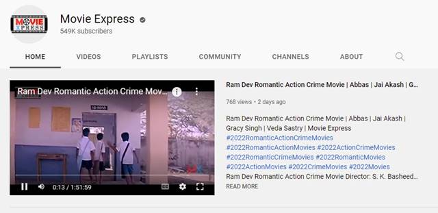 So, Movie Express is a YouTube channel for Indian users, and it offers hundreds of full-length movies to watch online.