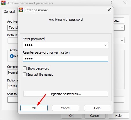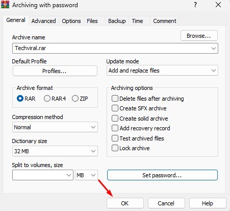 That’s it! This will password protect your existing RAR file on Windows 11.