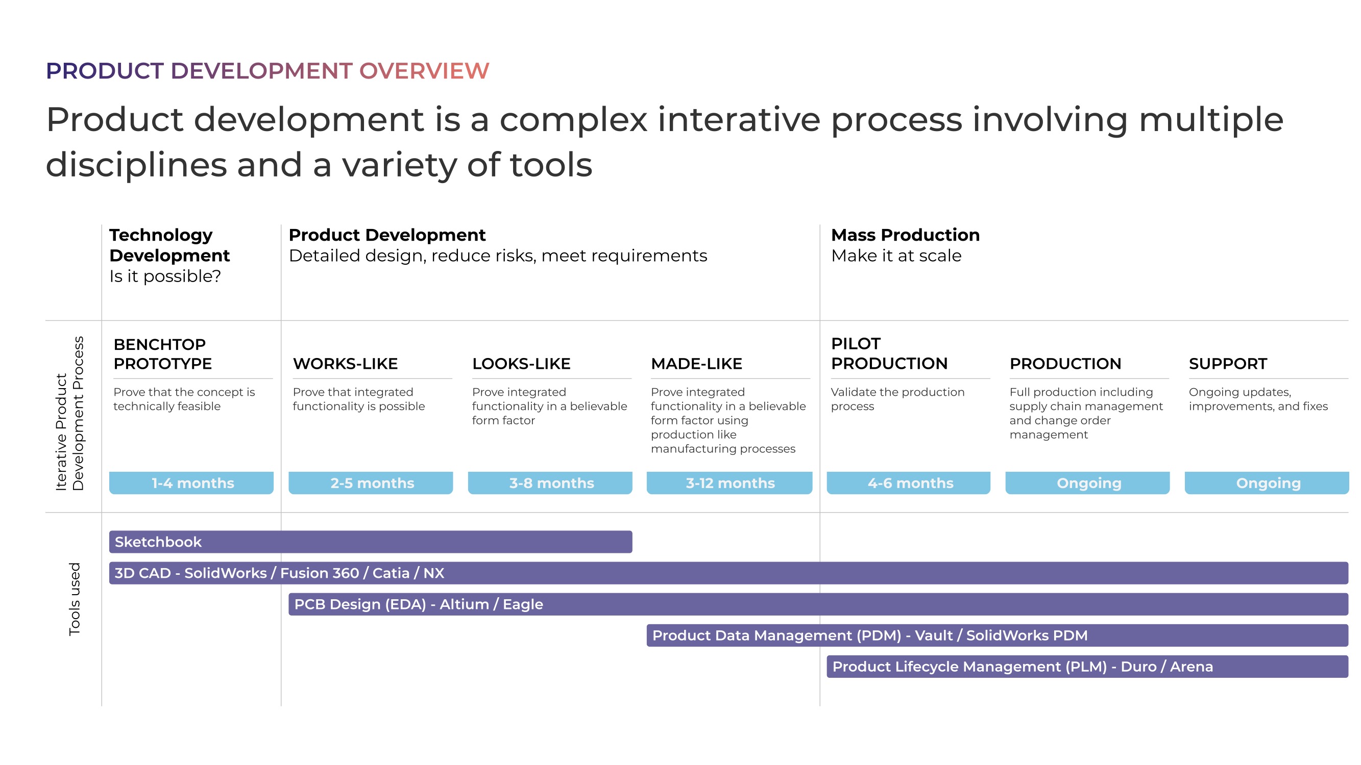 - “Product development is a complex interactive process involving multiple disciplines and a variety of tools.” — overview of how hardware products are made