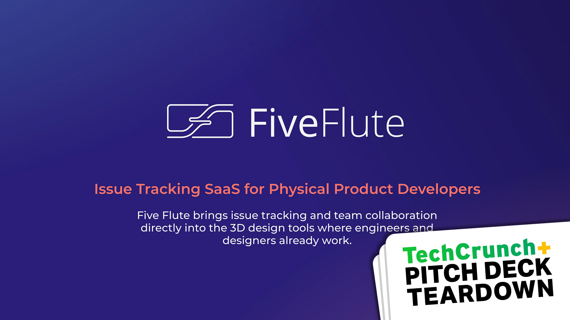 What if hardware product managers had tools as good as those available for software PMs? Well, that’s the world Five Flute wants to live in. The company raised a $1.2 million round I covered earlier this week. Today, we’re taking a closer look at the pitch deck it used to raise its pre-seed round. Five Flute shared its excellent deck with us with only minimal edits, and I’m psyched to share it with you — along with my usual teardown shenanigans. Let’s dive in and figure out what works well and what comes across as a little bit wobbly.