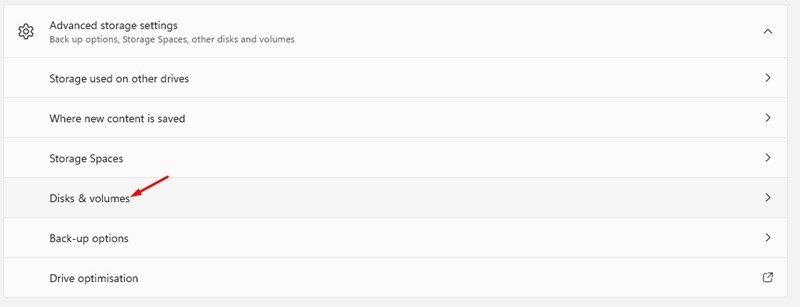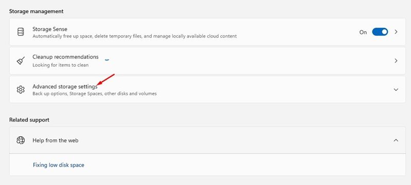 4. Now scroll down and expand the Advanced Storage settings option.