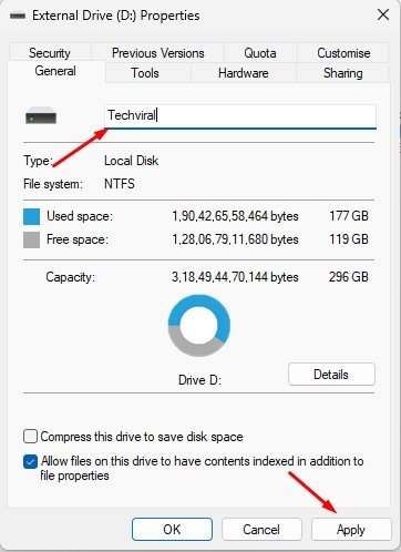 That’s it! This is how you can change the drive or volume label from Properties.