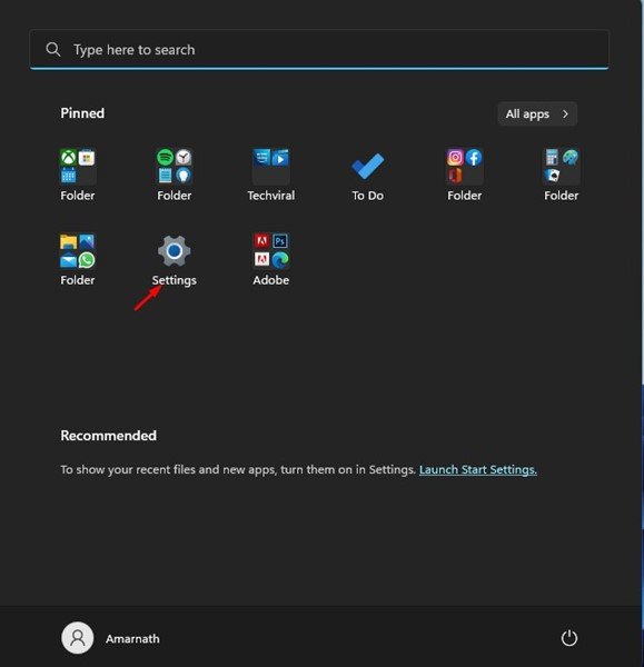 1. First, click on the Windows 11 Start button and select Settings.
