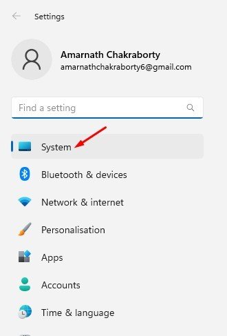 2. On the Settings app, switch to the System tab below.