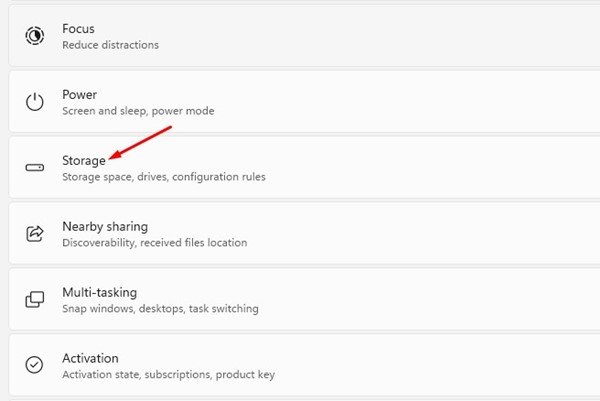 3. On the right, scroll down and click on Storage.