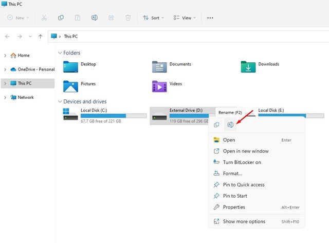 In this method, we will use Windows 11’s File explorer to assign a different name to our connected drive. Follow some of the simple steps we have shared below.