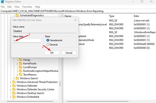 3) Turn Off Error Reporting in Windows 11 using Registry Editor