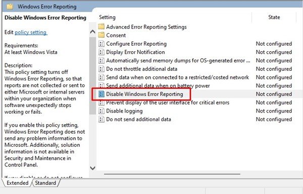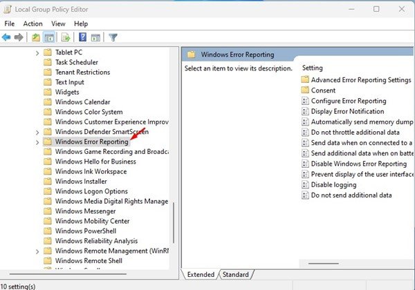2) Disable Error Reporting in Windows 11 Using Local Group Policy Editor