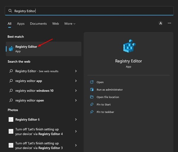 1. First, click on the Windows 11 Search and type Registry Editor. Next, open the Registry Editor from the list of matching results.Registry Editor
