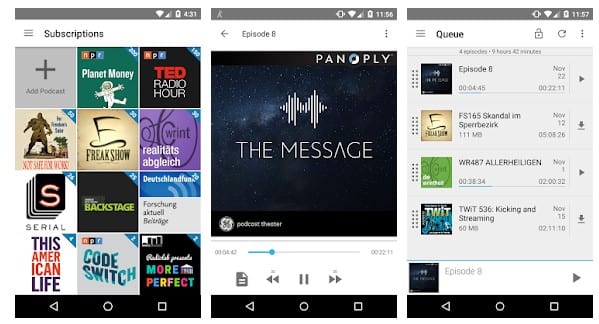 AntennaPod is a podcast manager and player that gives instant access to millions of free and paid podcasts, from independent podcasters to large publishing houses such as the BBC, NPR, and CNN.