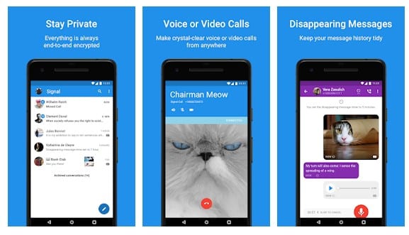 The good thing about Signal Private Messenger is that it employs end-to-end encryption on all communication options. You can make voice/video, exchange messages, send file attachments, send disappearing messages, and more with Signal Private Messenger.