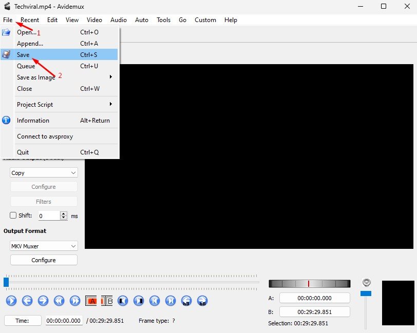 4. Once done, click on the File menu in the top-left corner and select ‘Save‘. Now select the save location to convert the video.
