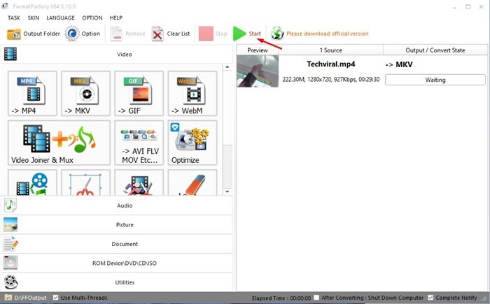 Format Factory is another best free video converter tool for Windows that can convert your MP4 videos to MKV. Here’s how you can use Format Factory to convert your videos.