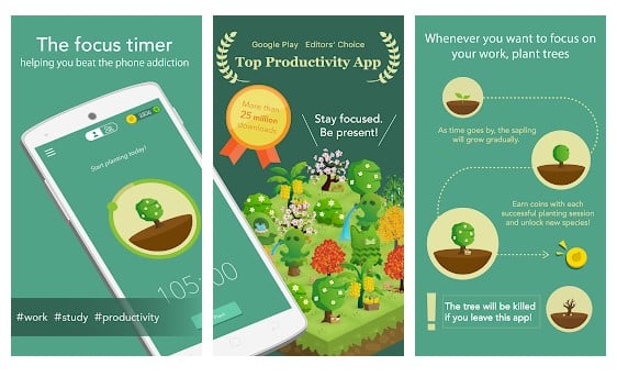 If you have been searching for ways to get rid of smartphone addiction, then Forest might be the best app. It’s a productivity app for Android that lets you plant a seed that grows into a tree within 30 minutes.