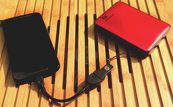 You can connect the portable hard drive or external storage with the help of an OTG cable. You need to connect the OTG cable to your smartphone and external storage.