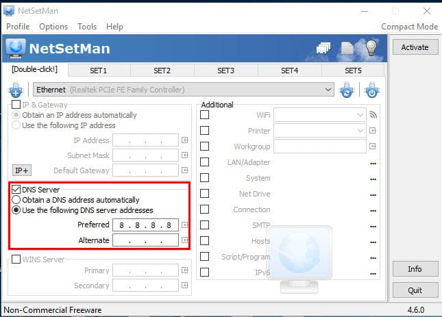 NetSetMan is not limited to changing DNS Settings; with this tool, you can manage your WiFi network, workgroup network drives, and much more.