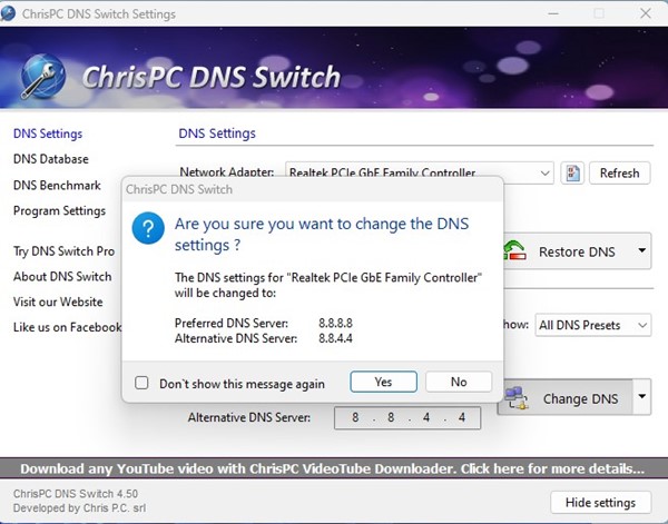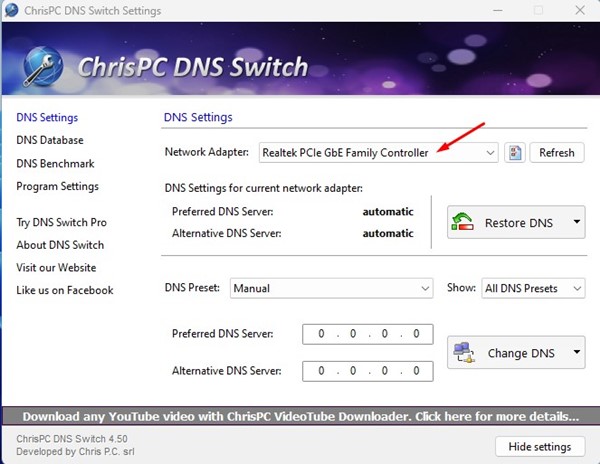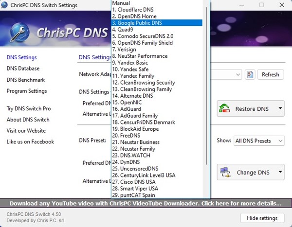 1. First, download and install the Chris-PC DNS switch on your Windows computer.