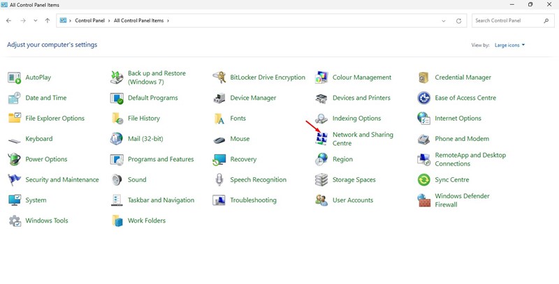 1. On your Windows PC, go to the Control Panel and select Network and Sharing Center.