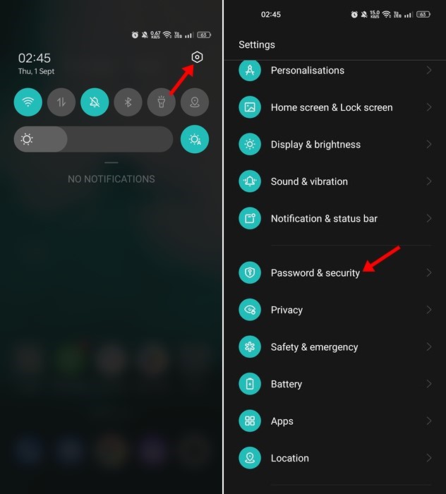 1. First, open the Settings app on your Android device. On the Settings app, scroll down and tap on Passwords & security.