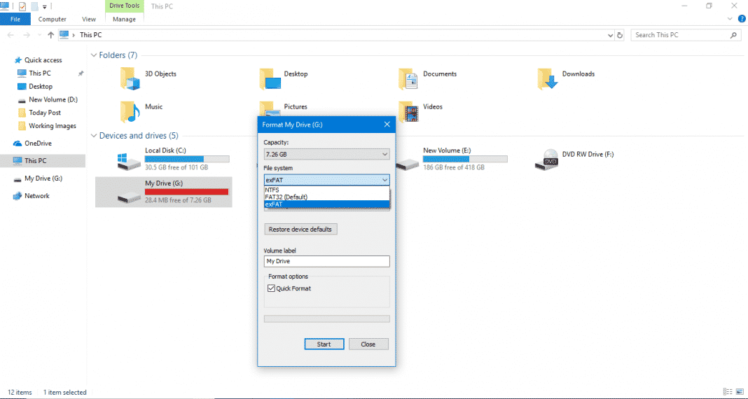 Now you can choose a fast or slow format depending on how thoroughly you want to erase the previous data to change the file system. That’s it! This is how you can format by changing the format type of a USB drive.