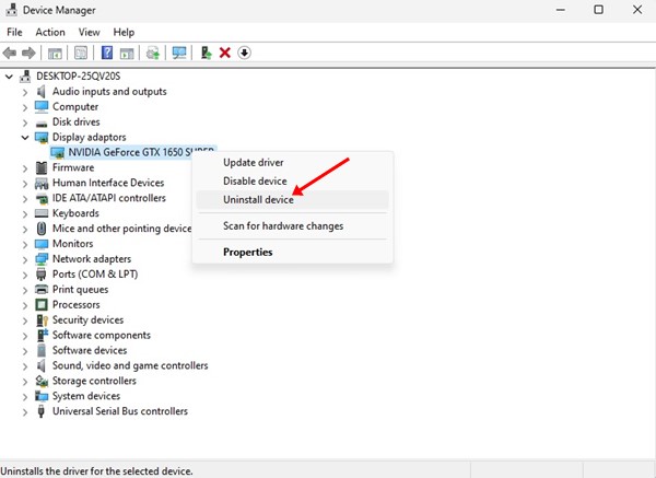 4. This will uninstall the graphic card driver. Once done, restart your computer.