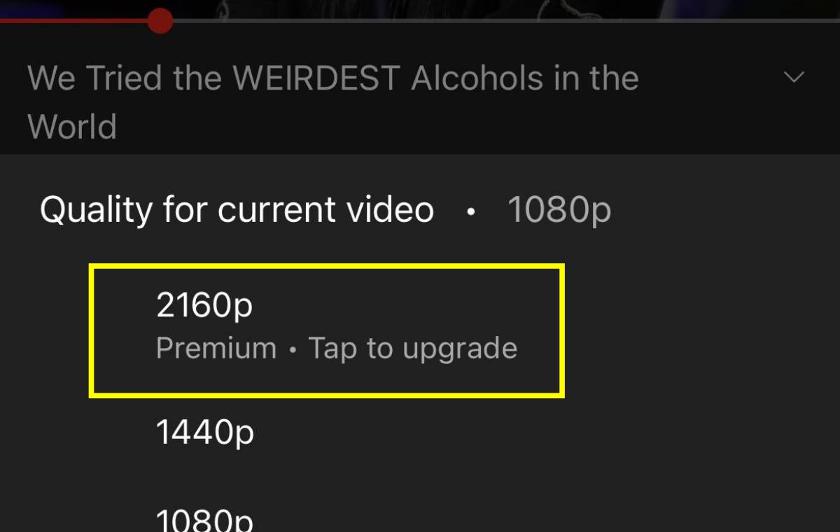 As you can see in the above screenshot, which is captured from the iOS’s YouTube app and mentions playing video in 2160p (4K) quality, you need to upgrade to Premium, and for that, there’s a link for “Tap to upgrade”.